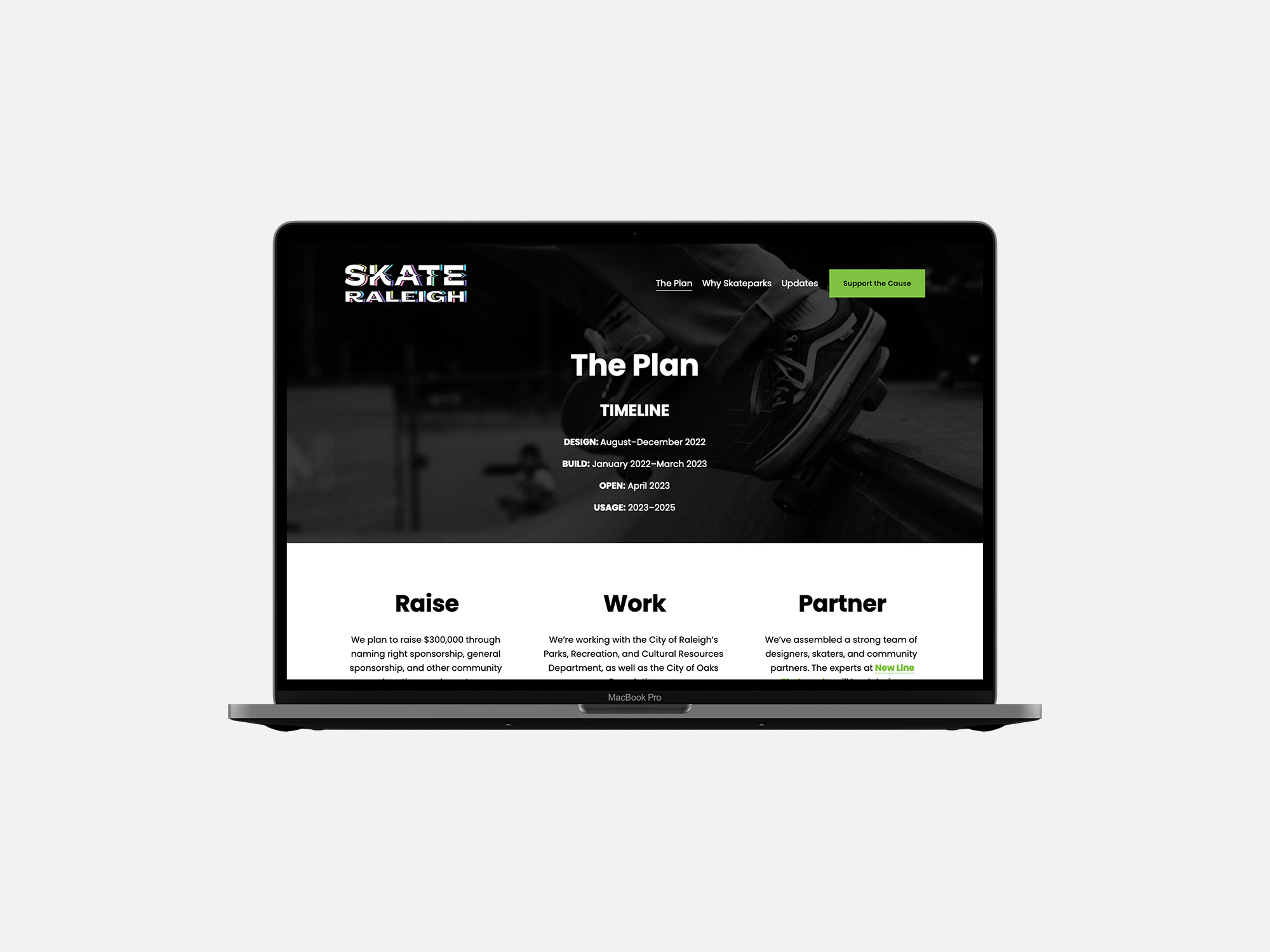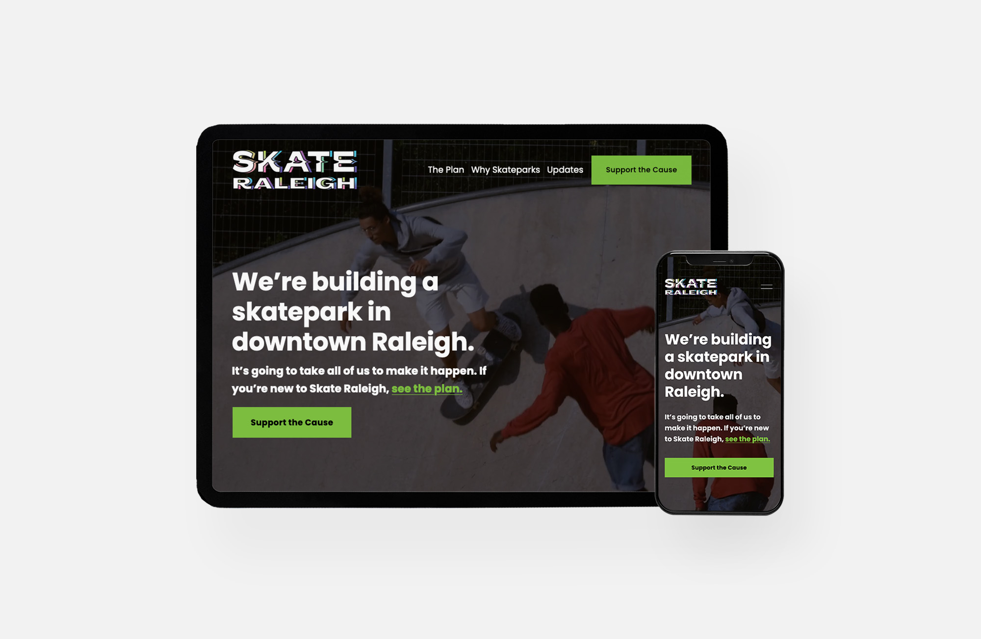 We already shared the brand we built for Skate Raleigh, but if the group was going to build Downtown Raleigh’s first skatepark—on an aggressive schedule—they’d need a website to be their online home. We were game, and we had a plan.